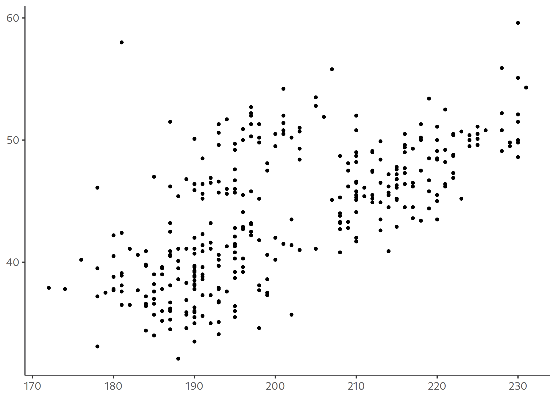 point(penguins, bill_length_mm, flipper_length_mm, island, size = 1.5, x_title = "Bill", y_title = "Flipper", title = "Length (mm)", theme = theme_reach(palette = "artichoke_3", text_font_face = , grid_major_x = TRUE,  title_position_to_plot = FALSE))