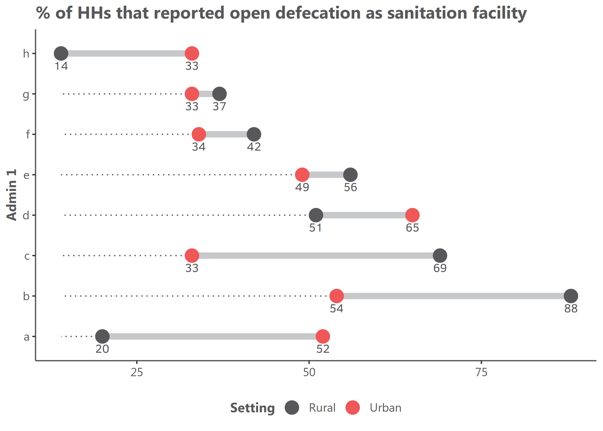 add_layout("% of HH that reported open defecation as sanitation facility") +